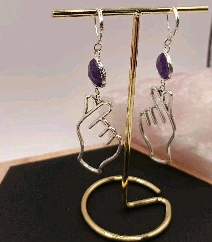 Boucles D'oreilles En Argent Pierre Naturelle Améthyste Violette Fantaisie Main