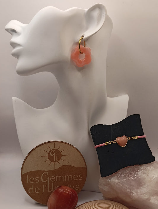 Offre printempsParure boucles et bracelet Et Pierre Naturelle quartz blanc
