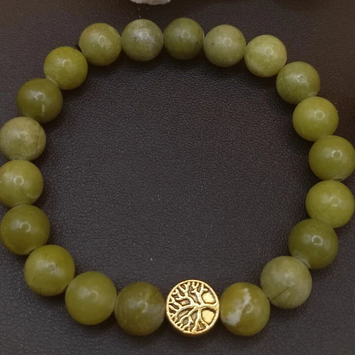 Bracelet En Pierre Naturelle Jade Vert Et Arbre De Vie