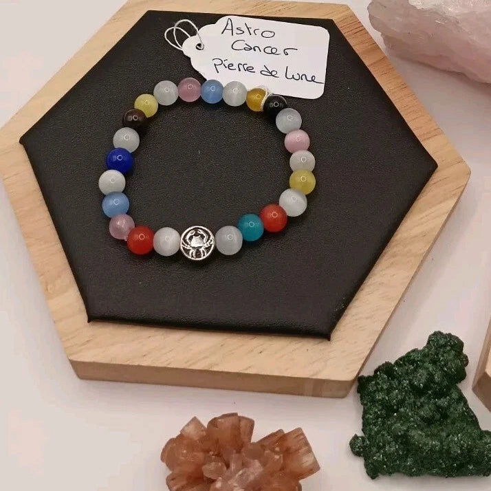 Bracelet en pierre de lune colorés de multicolores 8mm, signe astrologique Cancer