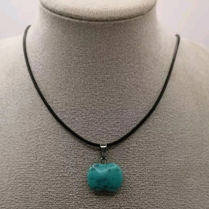 Collier cordon avec pendentif en Pierre Naturelle Holwite Turquoise, noire, rouge